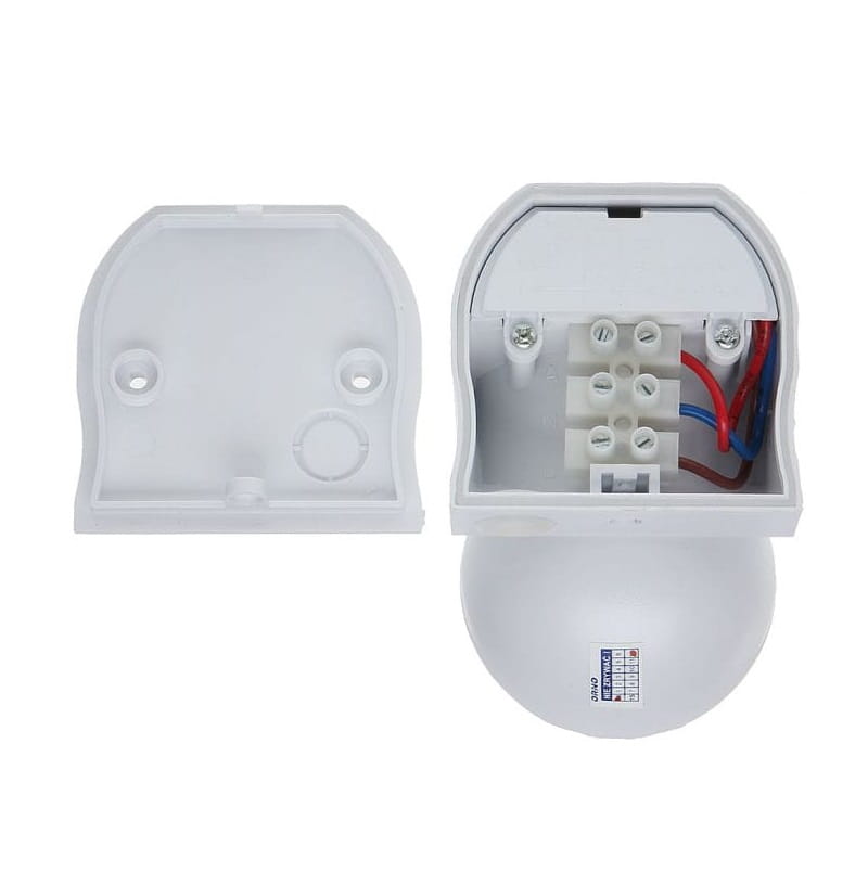 Urządzenie mające na celu automatyzację procesów elektrycznych, przy jednoczesnej oszczędności energii elektrycznej. Jego zadanie polega na włączeniu i po upływie określonego czasu wyłączaniu, obwodu elektrycznego w chwili wykrycia obiektu emitującego promieniowanie podczerwone. Ten model czujnika może wykrywać ruch w zakresie 180° na odległości max 12m. Do dyspozycji jest tu szereg możliwości regulacyjnych, co ogranicza obsługę użytkownika do niezbędnego minimum. Pierwszym regulowanym parametrem jest czas działania mierzony od chwili wykrycia ruchu do momentu wyłączenia: od 10 sek. do 8 min. Drugim regulowanym parametrem jest poziom natężenia światła, przy jakim czujnik zaczyna wykrywać ruch. Dzięki tej właściwości możemy przystosować go do działania tylko w okresie od zmierzchu do świtu.