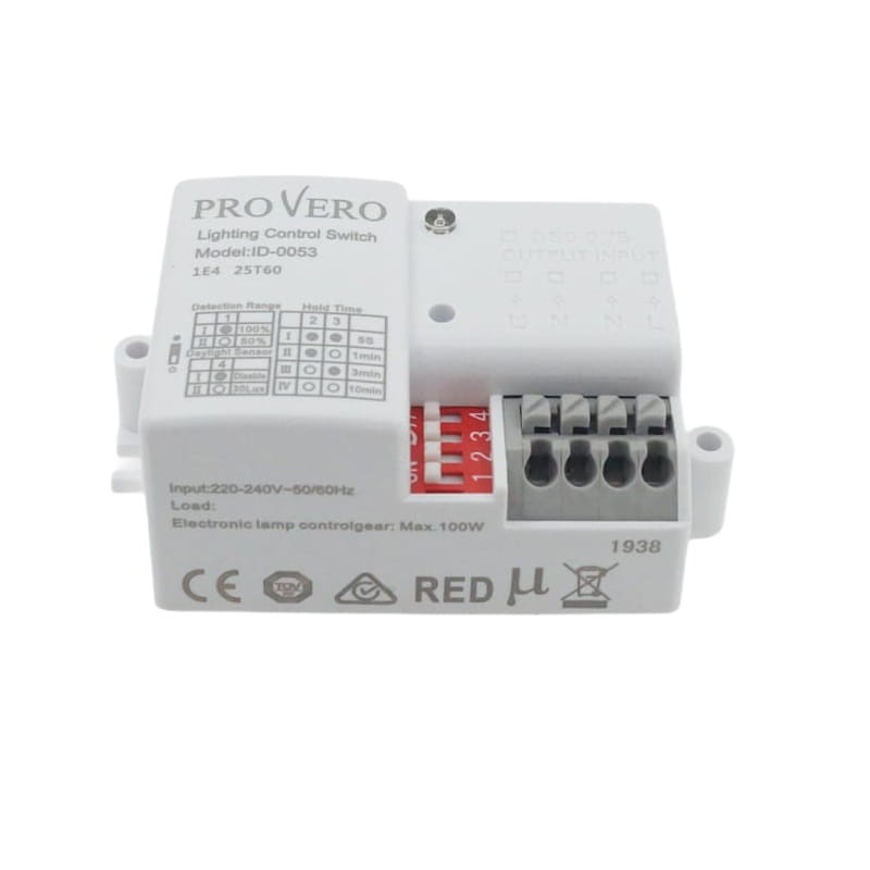 Urządzenie służy do automatycznego włączania i wyłączania oświetlenia po określonym czasie. Mikrofalowy (radarowy) czujnik ruchu jest aktywnym detektorem ruchu - zintegrowany element pomiarowy wysyła elektromagnetyczne fale wysokiej częstotliwości i odbiera ich echo. Czujnik wykrywa zmiany w echu wywołane nawet najmniejszym poruszeniem w obserwowanym obszarze.