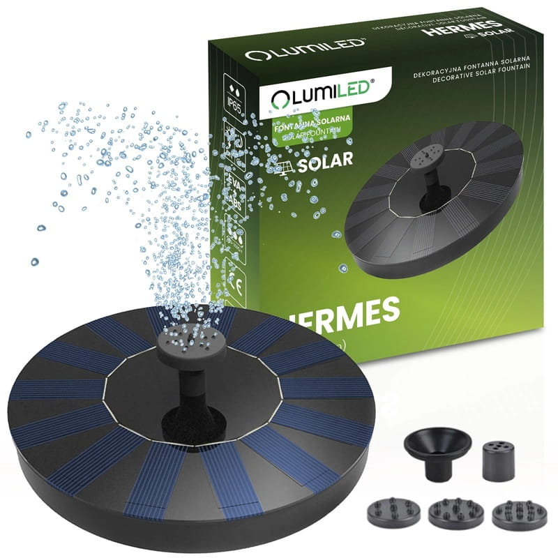 Fontanna ogrodowa solarna LED pływająca z pompą HERMES 180l/h