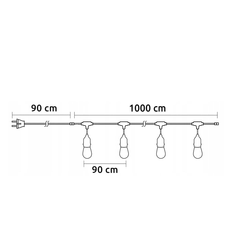 W tym konkretnym modelu girlandy, prezentowane są żarówki świecące białym ciepłym światłem, a całkowita długość lamp wynosi 10 metrów. W komplecie znajduje się 10 żarówek LED o mocy 1W każda.