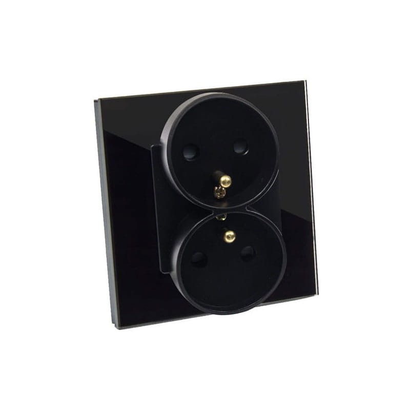 Gniazdko elektryczne podwójne czarne + ramka szklana