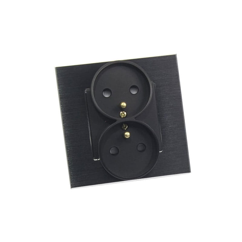 Gniazdko elektryczne ze szklanym panelem w kolorze czarnym, z uziemieniem oraz zabezpieczeniem prądowym przed dziećmi. Zastosowane szkło jest wysokiej jakości, hartowane, odporne na zarysowania i wysoką temperaturę. Pasuje do puszki o średnicy 60 mm (brak puszki w zestawie). Bolec uziemiający w kolorze miedzianym.