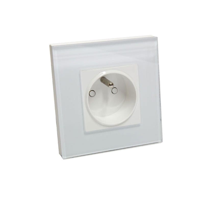 Gniazdko elektryczne pojedyncze białe + ramka szklana