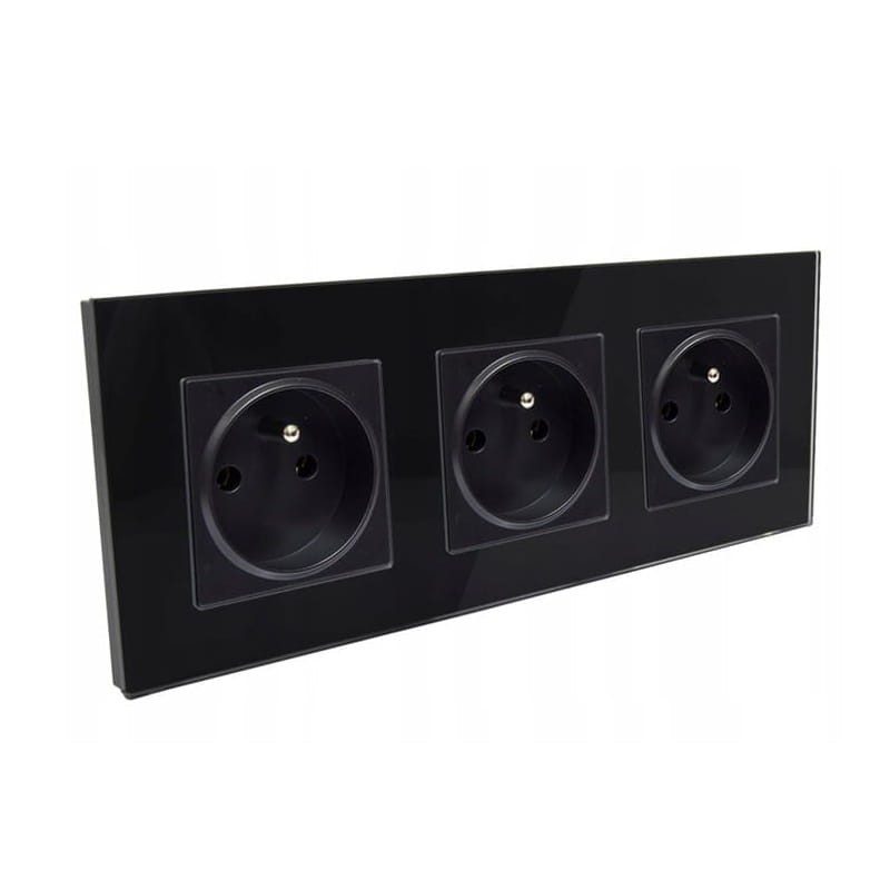Gniazdko elektryczne potrójne czarne + ramka szklana