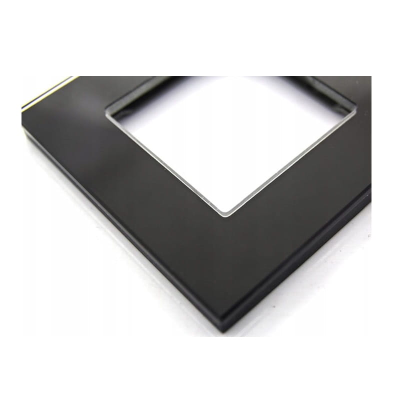 Gniazdko elektryczne ze szklanym panelem w kolorze czarnym, z uziemieniem oraz zabezpieczeniem prądowym przed dziećmi. Zastosowane szkło jest wysokiej jakości, hartowane, odporne na zarysowania i wysoką temperaturę. Gniazdko instalujemy w trzech puszkach o średnicy 60mm (zestaw nie posiada puszek montażowych). Bolec uziemiający w kolorze miedzianym.