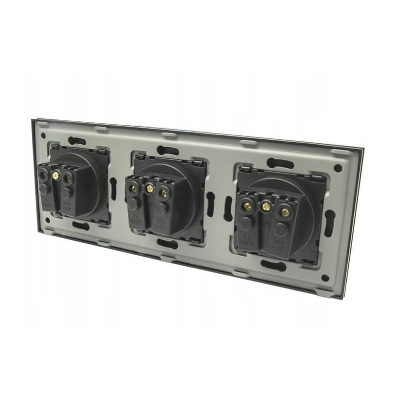 Gniazdko elektryczne potrójne czarne poziome + ramka szklana
