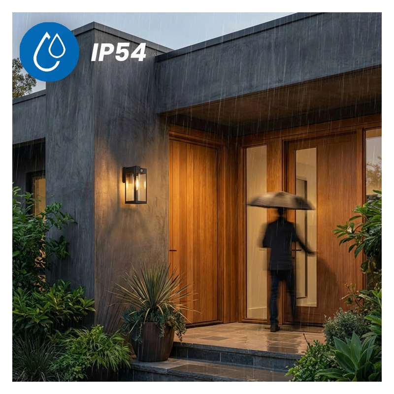 Połączenie aluminium i szkła gwarantuje trwałość oraz estetykę, a klasa szczelności IP54 chroni przed kurzem i zachlapaniami – lampa bez problemu pracuje na zewnątrz.