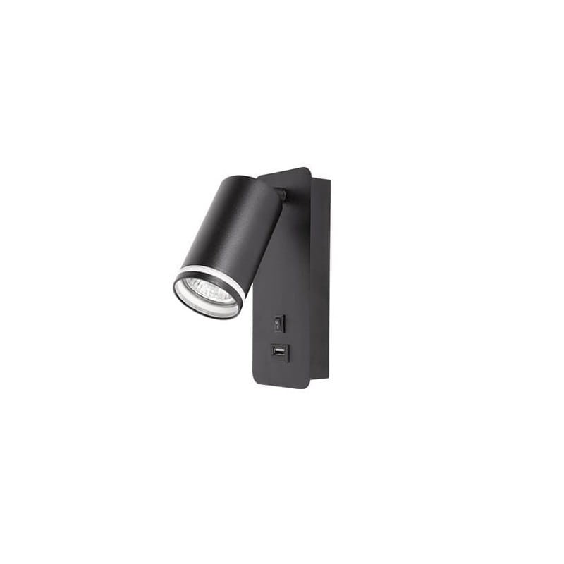 Kinkiet do czytania pojedynczy GU10 Ring 55mm czarny z wyłącznikiem i gniazdem USB