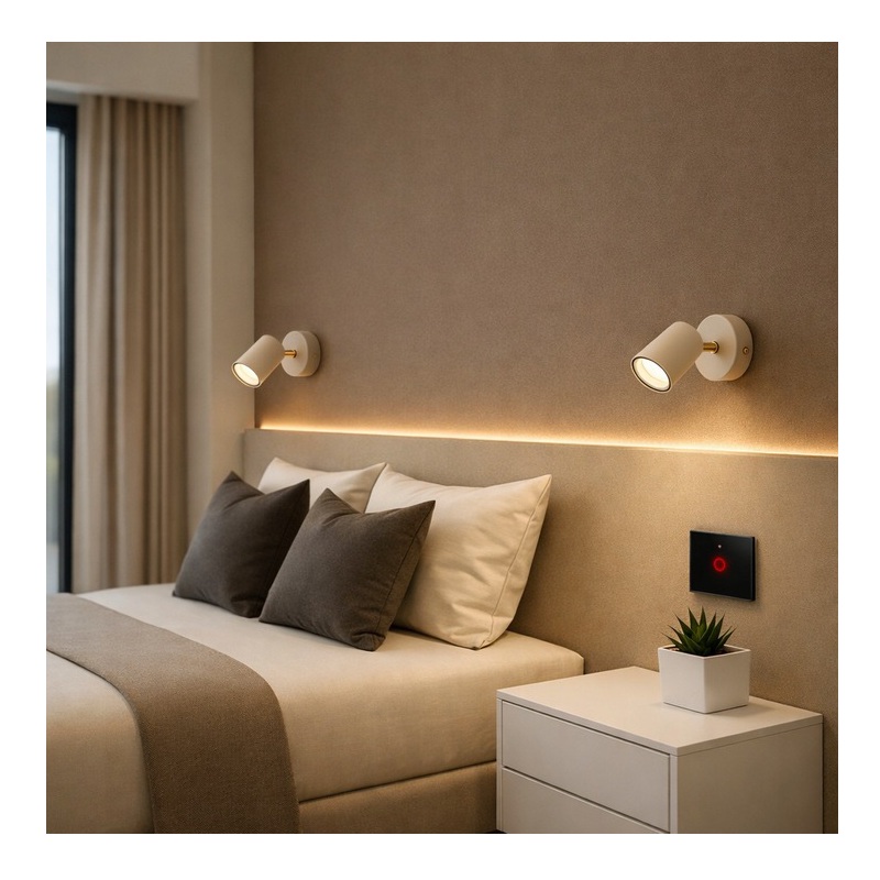 Kinkiet SPOTI ECRU 1xGU10 to idealny wybór dla osób szukających eleganckiej lampy punktowej w kolorze kaszmiru i złota, która podkreśli charakter wnętrza i zapewni funkcjonalne, nowoczesne oświetlenie.