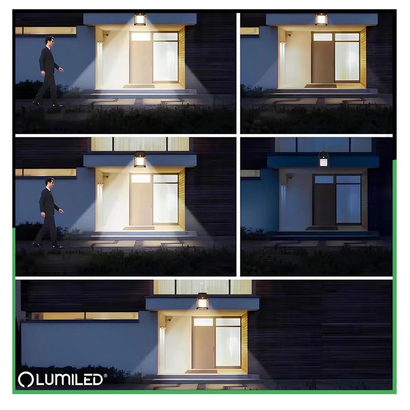 Lampa elewacyjna LED z czujnikiem ruchu uruchamia się samoczynnie po zapadnięciu zmroku i reaguje na wykrycie obecności. To wygodne i bezpieczne rozwiązanie, które zwiększa komfort korzystania z przestrzeni wokół domu. Do wyboru są trzy tryby pracy: pełna moc 100% przez 20 sekund i wyłączenie, 100% przez 20 sekund z przejściem w tryb 30% lub stałe światło na poziomie 50% jasności.
