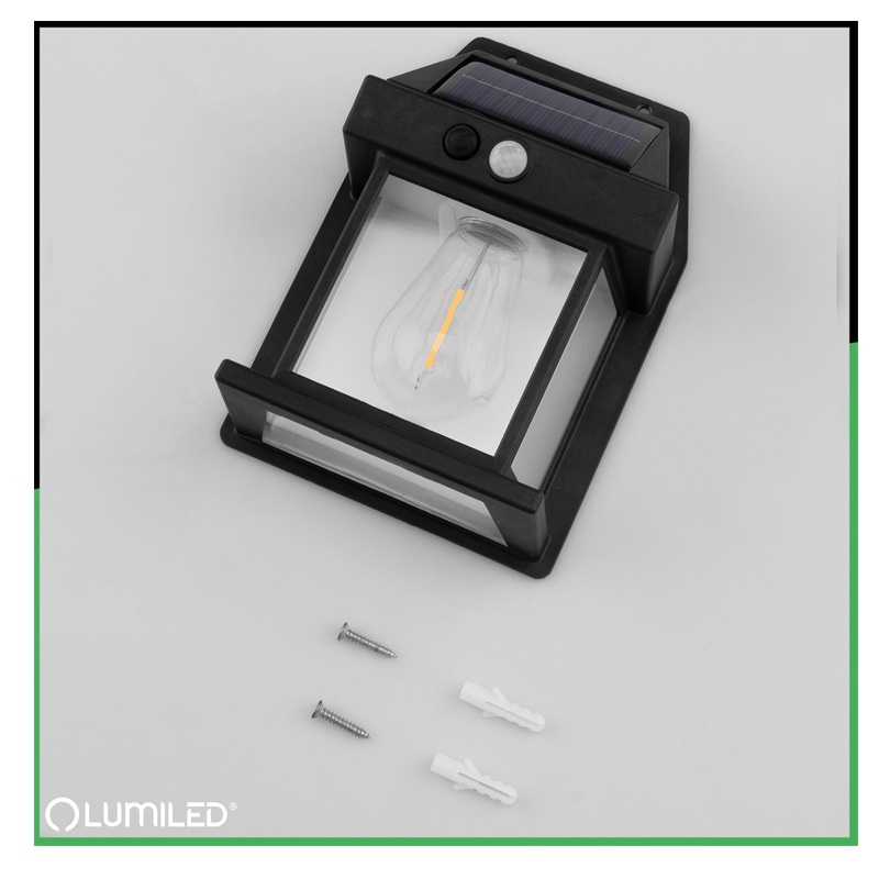 Kinkiet solarny, lampa elewacyjna LED 3000K IP44 DONA z czujnikiem ruchu i zmierzchu