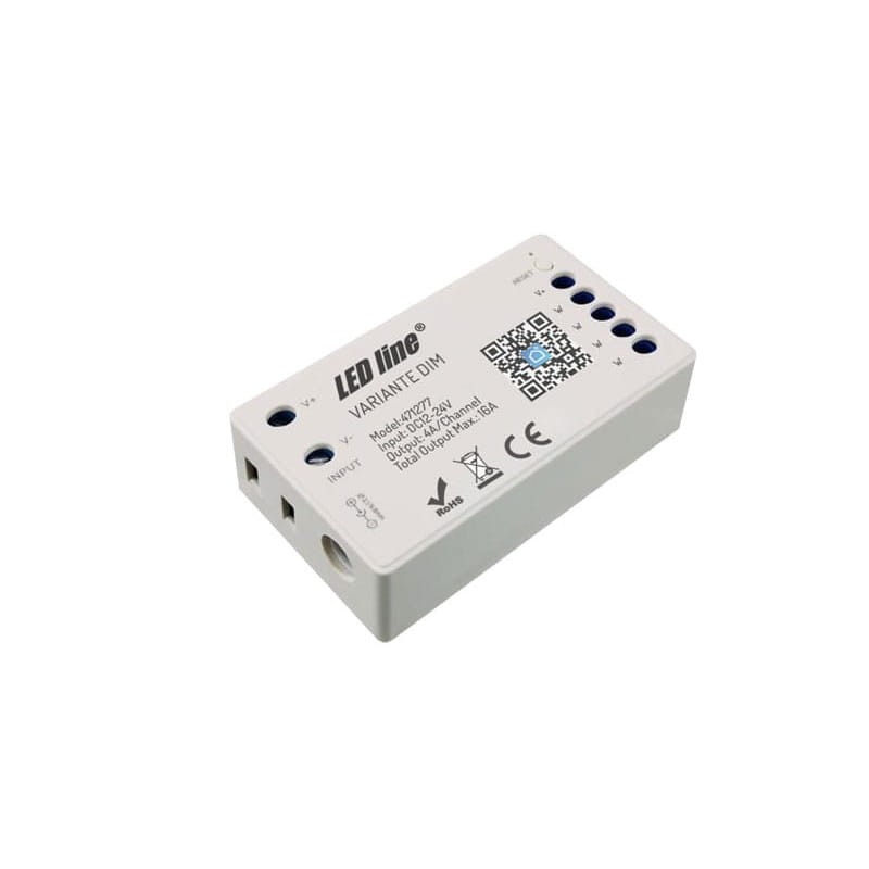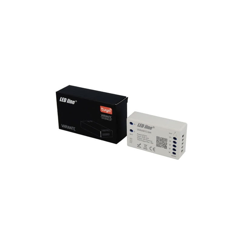 Kontroler VARIANTE DIM jest urządzeniem służącym do sterowania jednokolorowymi taśmami LED. Do sterownika można podłączyć taśmy zasilane napięciem 12V o łącznej mocy do 192W lub 24V o łącznej mocy 384W. W celu podłączenia taśm LED o większej mocy należy zastosować odpowiedni wzmacniacz sygnału.