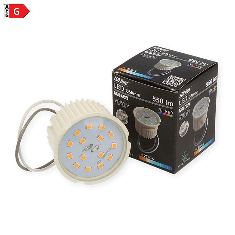 Lampa emituje stabilny strumień świetlny 550lm pobierając tylko 7W przy zachowaniu wysokiego stopnia odwzorowania barw Ra>80. Dzięki wysokiej jakości parmetrów świetlnych nawet przy małym natężeniu światło emitowane przez lampę jest stabilne i wyraźne. Lampy Ø50mm najlepsze zastosowanie znajdą przy dekoracjach schodów, mebli oraz wszędzie tam gdzie jest ograniczone miejsce na montaż tradycyjnych żarówek. Lampa świeci przyjemnych ciepłym białym światłem.