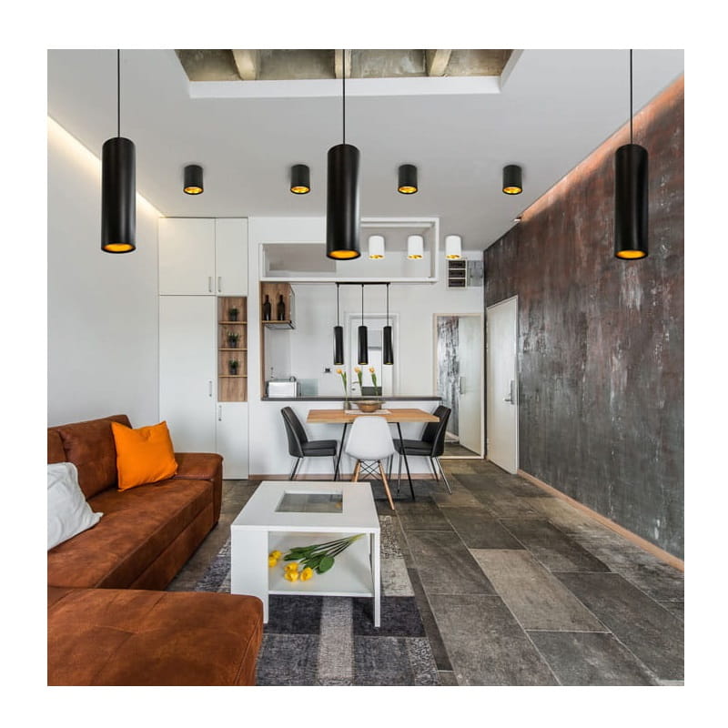 Oprawa wisząca do zamontowania na suficie. W oprawie możemy zamontować jedną żarówką GU10 o maksymalnej mocy 8W, w zestawie brak takiej żarówki, można ją zakupić w naszym sklepie jako osobny artykuł. Oprawa wykonana ze stali kolorze czarnym matowym ze złotymi wstawkami.