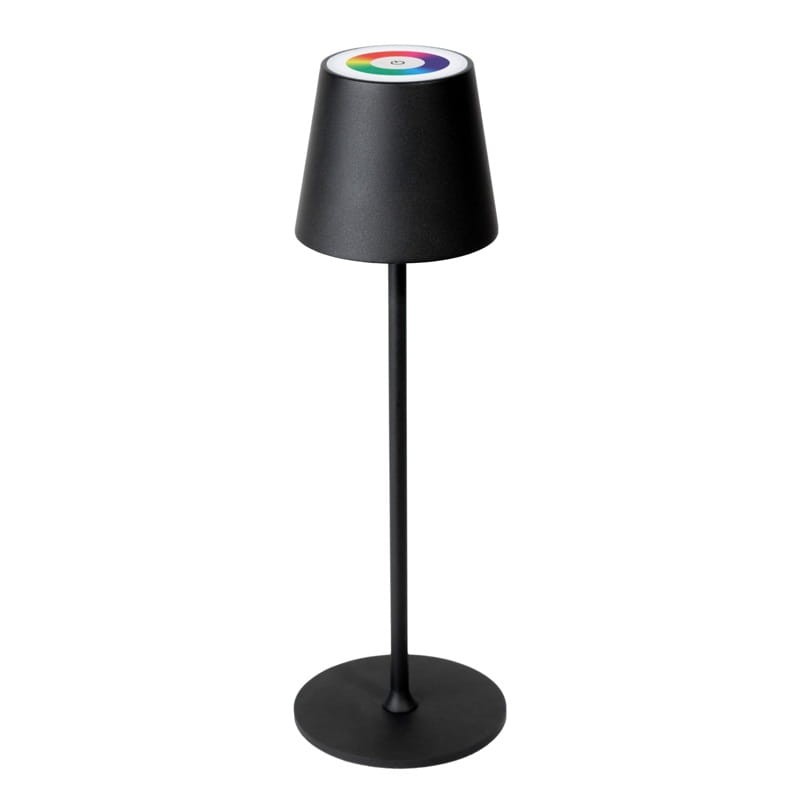 Lampka biurkowa, stołowa, restauracyjna, na taras, do altany czarna 1,5W RGB + biały IP44 ładowalna