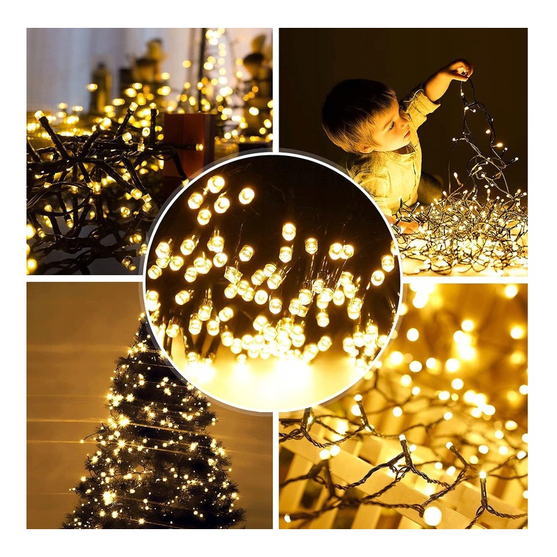 Lampki choinkowe 300 LED 22m IP44 8 trybów białe ciepłe