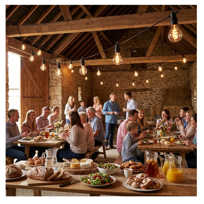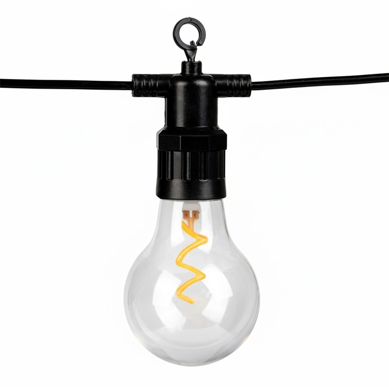 Praktyczne uchwyty przy każdej oprawce pozwalają szybko zawiesić girlandę na haczykach, linkach czy balustradzie. Możesz też łączyć zestawy i tworzyć większe instalacje świetlne.