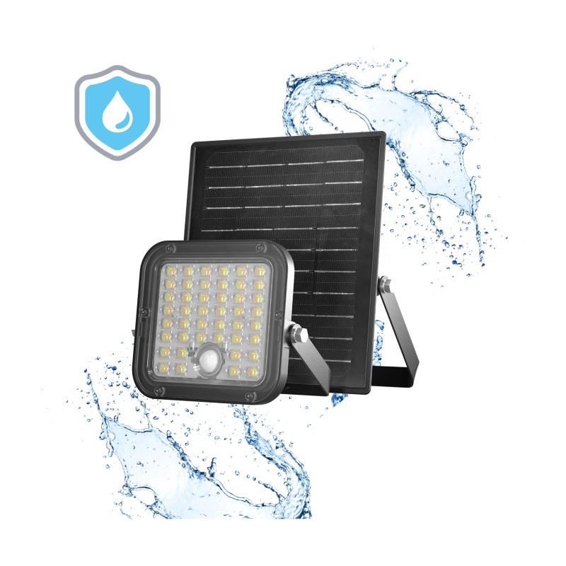 Wbudowany czujnik ruchu PIR uruchamia światło tylko wtedy, gdy wykryje ruch w zasięgu do 6 metrów i kącie detekcji 120°. Dodatkowo czujnik zmierzchu sprawia, że naświetlacz aktywuje się wyłącznie po zapadnięciu zmroku, co maksymalnie oszczędza energię.