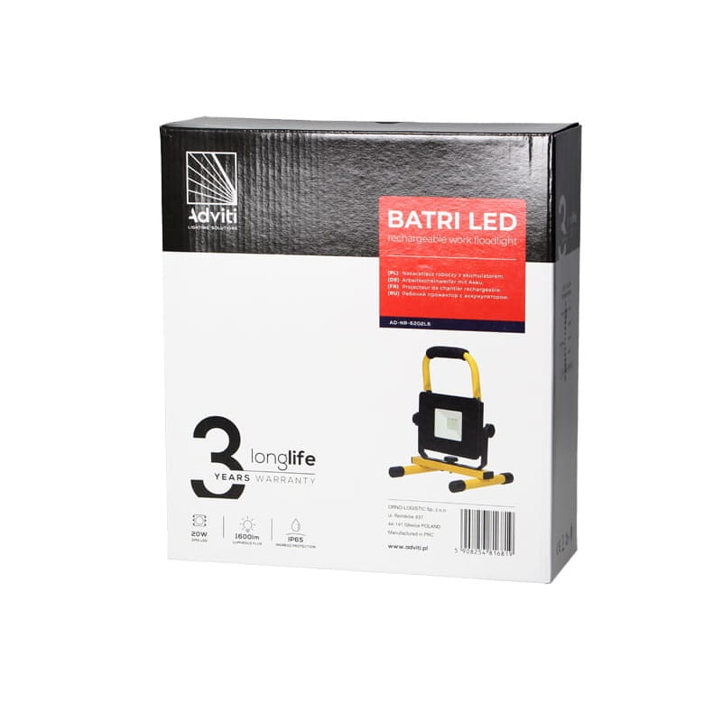 Dzięki zastosowaniu diod LED SMD uzyskaliśmy produkt o dużej wydajności świetlnej przy bardzo małym zużyciu energii. Oprawa posiada dwa tryby świecenia 100% i 50%. Wbudowany akumulator litowo-jonowy daje możliwość do kilku godzin ciągłej pracy bez ładowania.