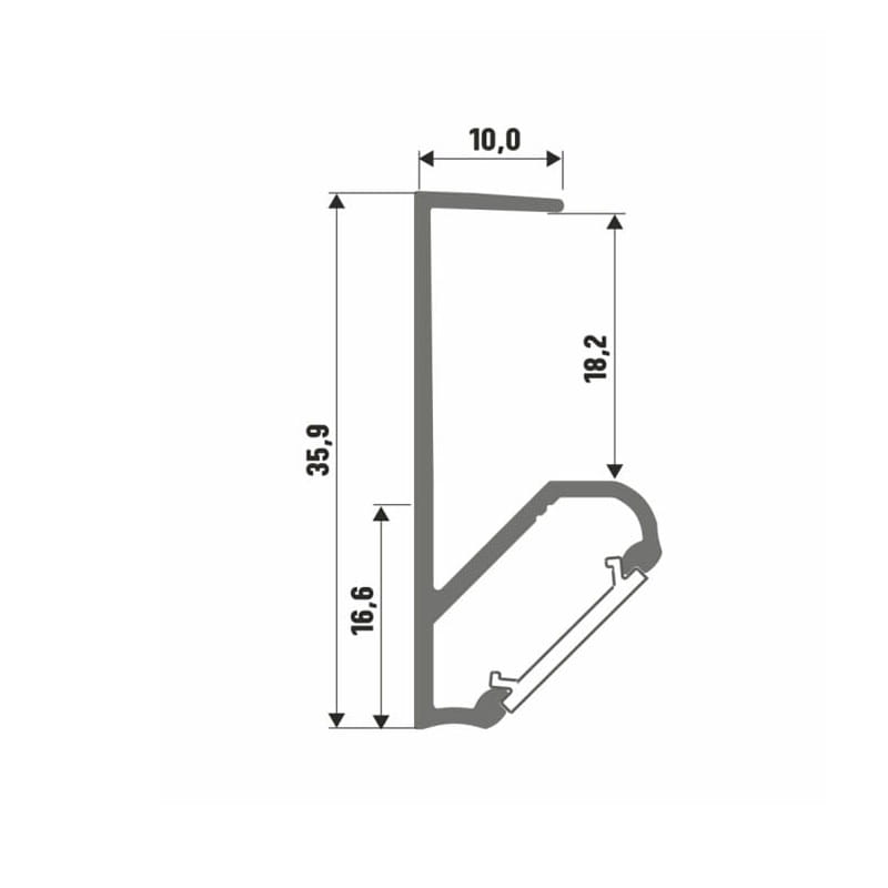 Profil Q18 to profil aluminiowy narożny, kątowy 45°, do oświetlenia szaf i blatów.