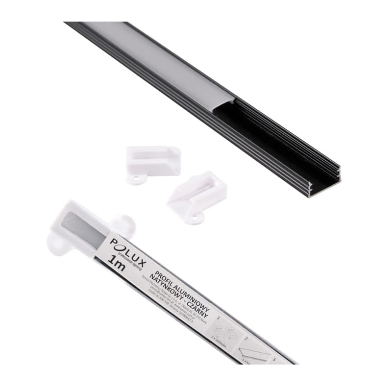 PROFIL aluminiowy nawierzchniowy czarny do TAŚMY LED 1 metr - zestaw
