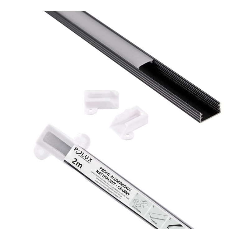 PROFIL aluminiowy nawierzchniowy czarny do TAŚMY LED 2 metry - zestaw