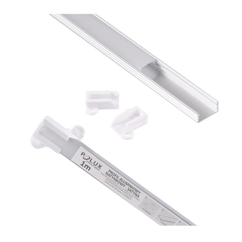 PROFIL aluminiowy nawierzchniowy satyna do TAŚMY LED 1 metr - zestaw