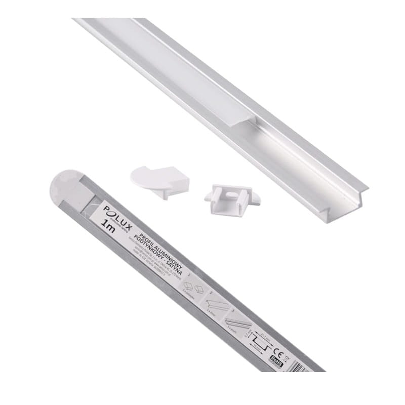 PROFIL aluminiowy wpuszczany satyna do TAŚMY LED 1 metr + klosz + zaślepki