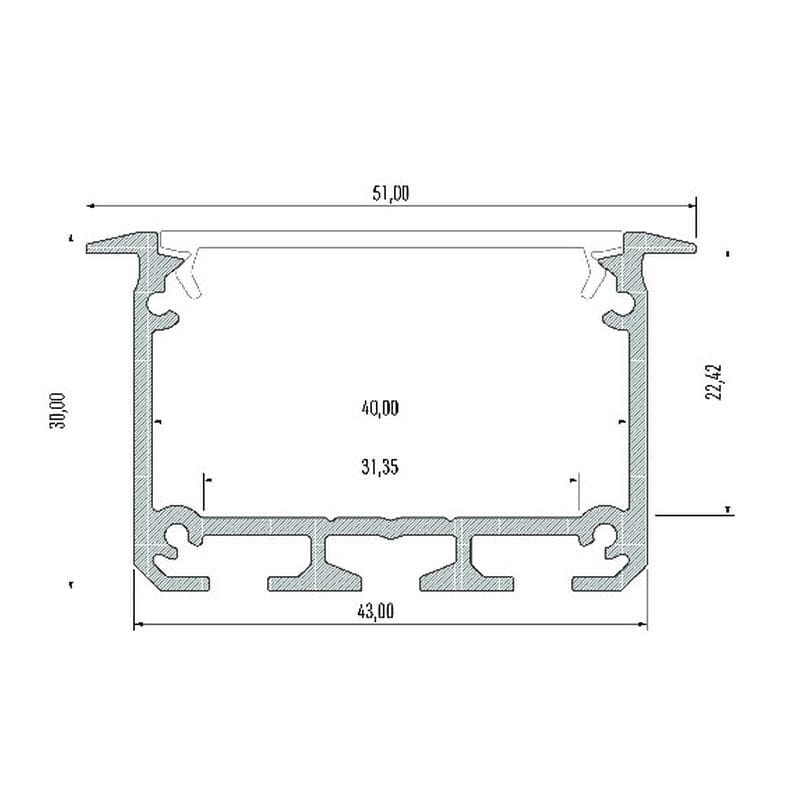 PROFIL wpuszczany srebrny anodowany typ INSO - 1 metr