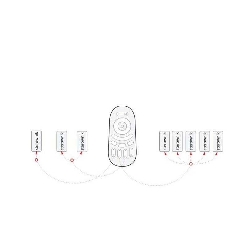 | Ilość stref: | kontrolowanie efektów świecenia opraw i taśm LED RGB, RGBW |