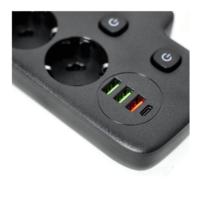 Przedłużacz Linea to nowoczesne i funkcjonalne urządzenie, które łączy tradycyjne gniazda 230V z rozbudowanym zestawem portów USB, umożliwiając wygodne zasilanie i ładowanie różnorodnych urządzeń elektrycznych i elektronicznych. Dzięki swojej wielofunkcyjności, idealnie sprawdzi się w domu, biurze, a także wszędzie tam, gdzie potrzebujesz dodatkowych źródeł energii.