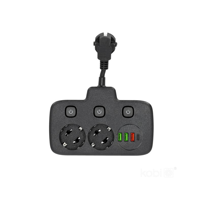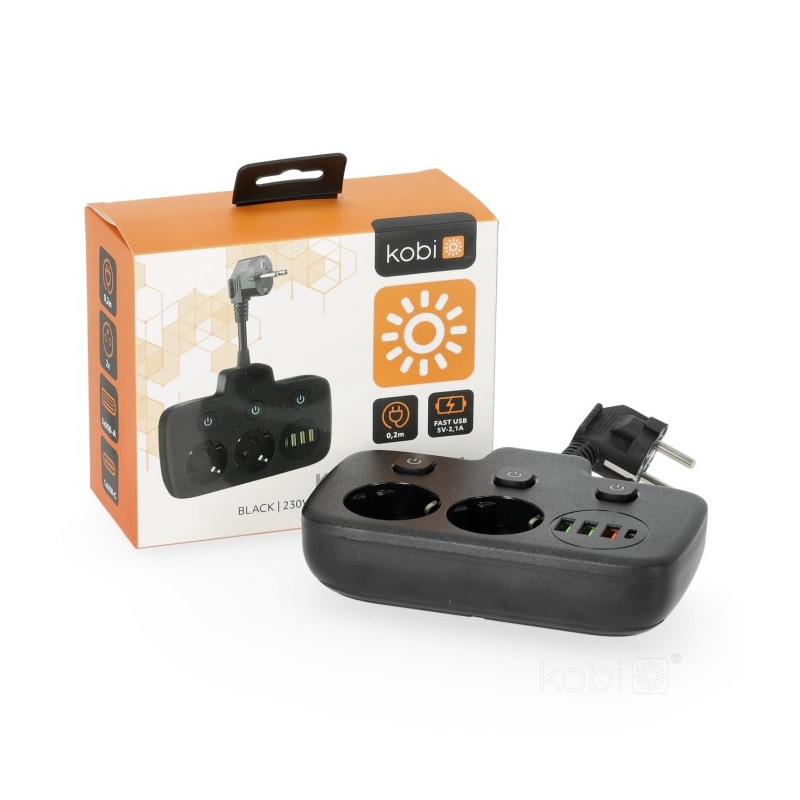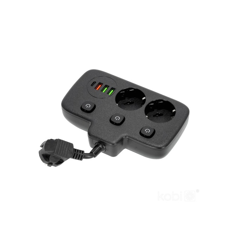 Przedłużacz rozgałęźnik Linea 2 gniazda 230V kabel 0,2m + 3xUSB-a i 1xUSB-C czarny