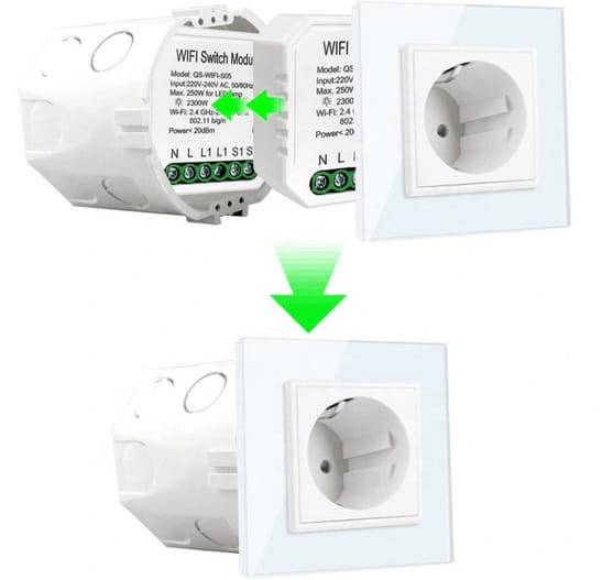 Moduł można łatwo zamontować pod tradycyjnym włącznikiem lub gniazdkiem, co pozwala na zachowanie istniejącej estetki wnętrza. Dzięki funkcji monitorowania energii, użytkownicy mogą śledzić poziom zużycia lub ustawiać automatyczne harmonogramy włączania i wyłączania urządzeń.