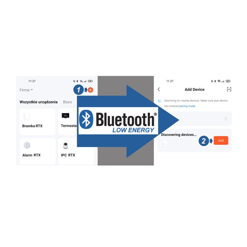 Kliknij "+"aby dodać urządzenie - dzięki komunikacji Bluetooth bezpośrednio z Twoim telefonem aplikacja błyskawicznie odnajdzie nowe urządzenie