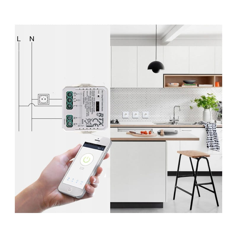 Sterowanie gniazdkiem: Po instalacji w puszce pod tradycyjnym gniazdkiem, można sterować dowolnym urządzeniem podłączonym do gniazdka.