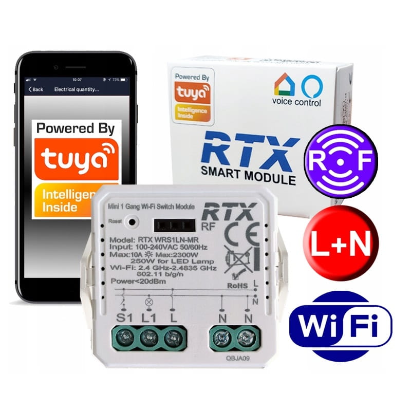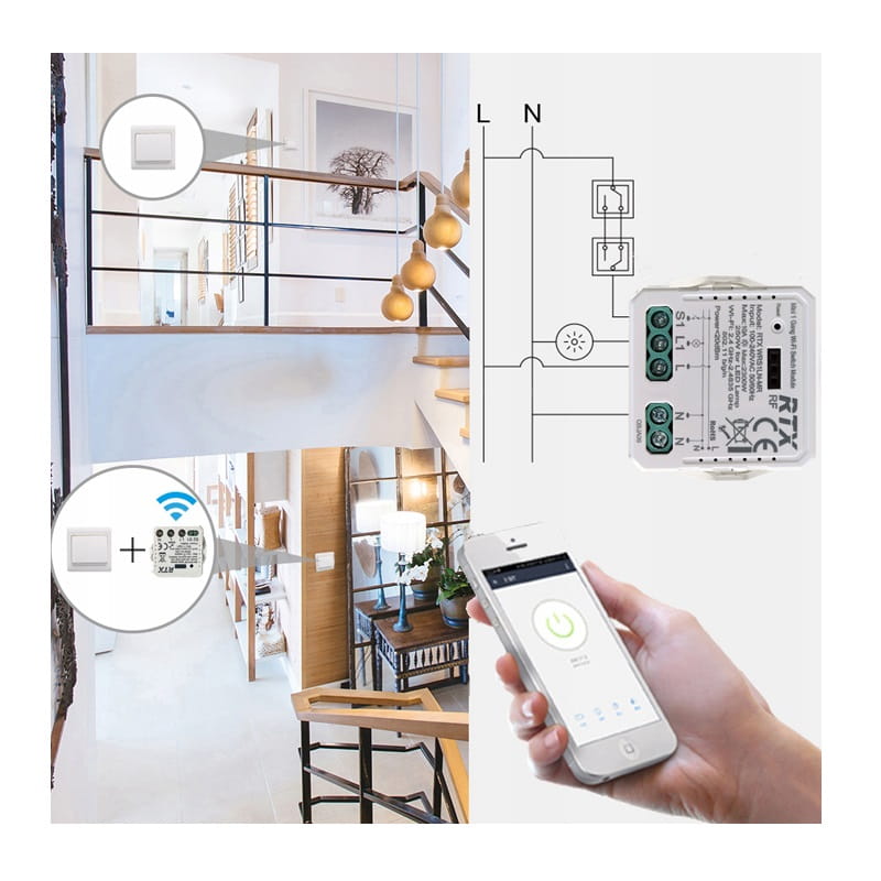 Uniwersalny przekaźnik dopuszkowy WiFi TUYA LN to zaawansowany moduł przeznaczony do inteligentnego sterowania mechanicznych włączników światła. Dzięki temu nowoczesnemu rozwiązaniu, możesz z łatwością przekształcić każdy tradycyjny włącznik światła lub gniazdko w element inteligentnego domu, który może być sterowany zdalnie za pomocą aplikacji Tuya Smart.