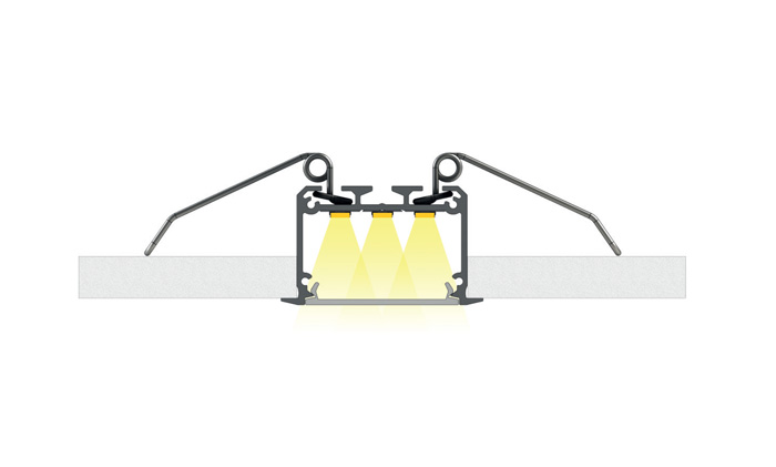 Sprężyna montażowa to główny element mocujący do profilu INSO, dzięki któremu profil może być mocowany w suficie podwieszanym. Sprężyna montażowa LUMINES INSO cechuje się wysoką wytrzymałością, co powoduje wysoką stabilność profilu aluminiowego zamontowanego pomiędzy płytami karton-gips.