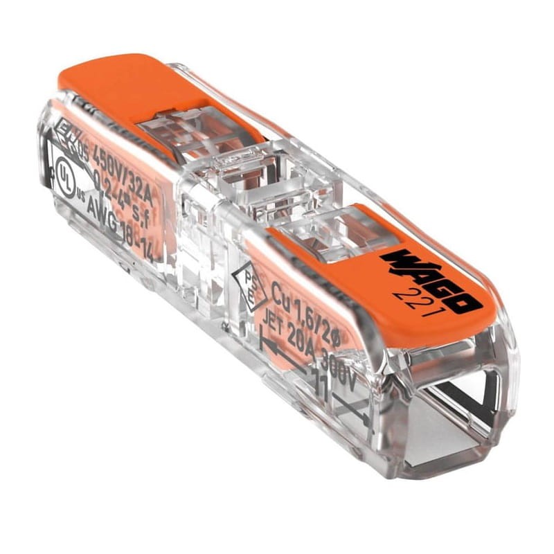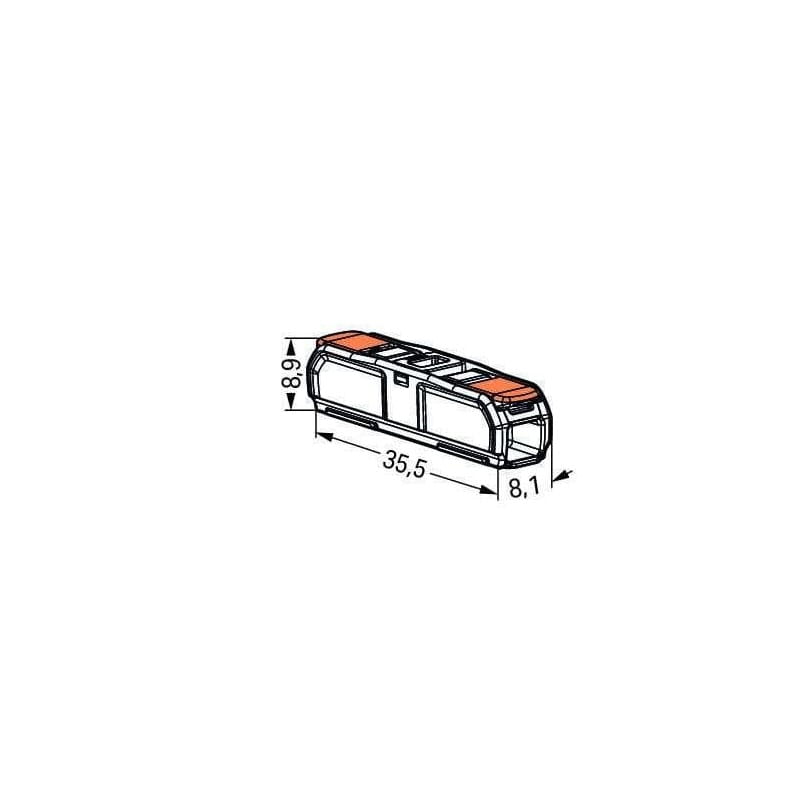 Obudowa w kolorze przezroczysto-pomarańczowym pozwala na łatwą kontrolę długości odizolowania oraz prawidłowego ułożenia przewodów. Złączka posiada dwa otwory pomiarowe, kompatybilne ze wszystkimi standardowymi końcówkami pomiarowymi, co dodatkowo usprawnia pracę instalatora. Niewielne wymiary – 8,9 x 8,1 x 35,5 mm – zapewniają oszczędność miejsca nawet do 40% w porównaniu z serią 222. Całość waży jedynie 2,4 g, dzięki czemu jest lekka i wygodna w użyciu.