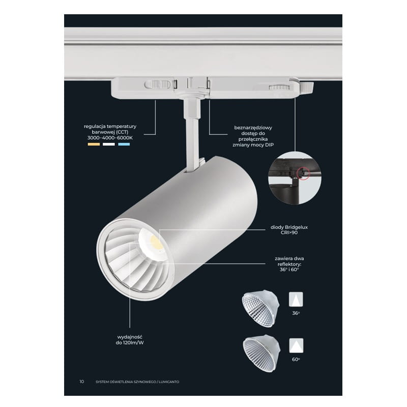 Seria LUMICANTO oferuje niezwykłe możliwości personalizacji oświetlenia, dostosowując się do Twoich potrzeb. Dzięki kompatybilności z oprawami wyposażonymi w zaawansowaną regulację możesz cieszyć się aż 96 ustawieniami, które pozwolą precyzyjnie kontrolować barwę i moc światła. Szynoprzewód 3-fazowy umożliwia jednoczesne zarządzanie kilkoma obwodami, co pozwala tworzyć różnorodne sceny świetlne w jednej przestrzeni.