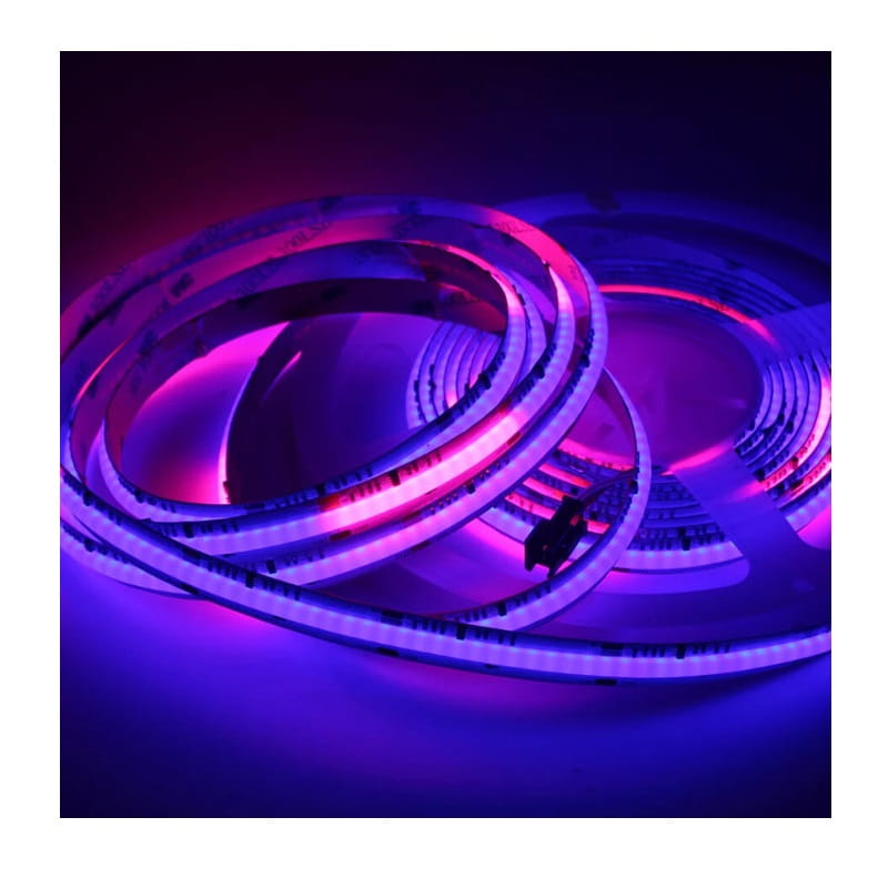 Wielofunkcyjność światła: Nasza taśma LED COB nie tylko oferuje bogaty wybór kolorów RGB, ale także dodatkowe światło białe ciepłe, które nadaje pomieszczeniom przytulnego i harmonijnego charakteru.