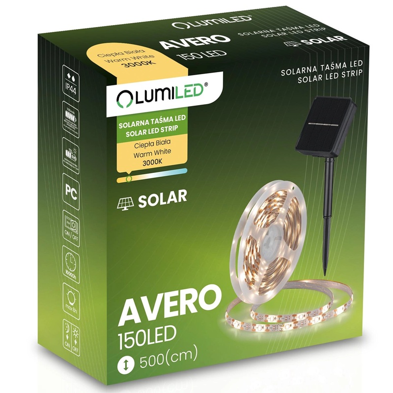 Taśma LED solarna 150xLED IP44 3000K biała ciepła 5m AVERO
