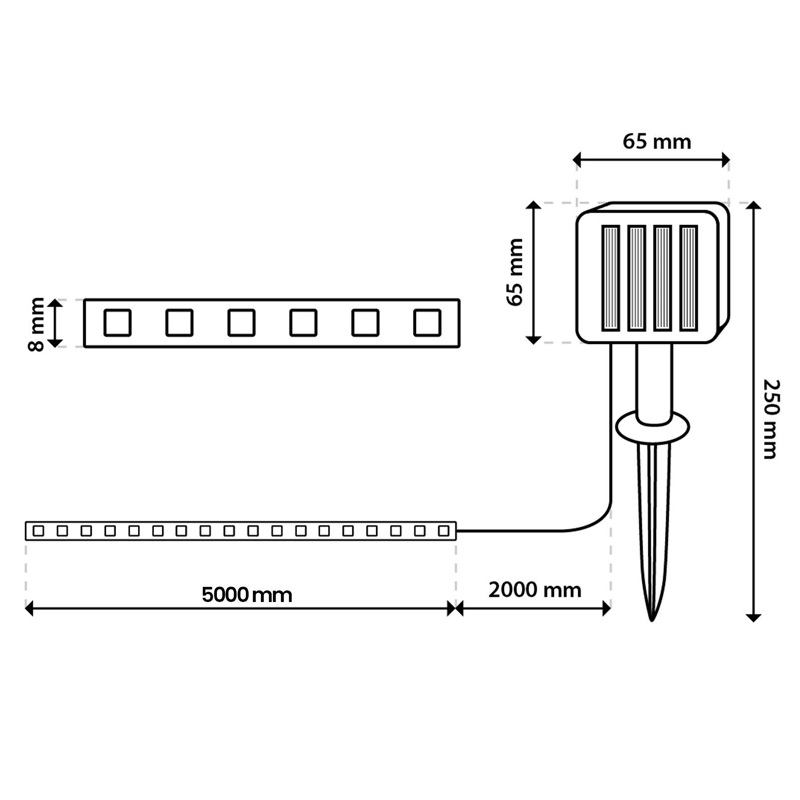 Taśmę można montować natynkowo lub wbijać w podłoże, a dzięki elastycznej konstrukcji łatwo dopasować ją do balustrad, pergoli, krawędzi tarasu czy elementów ogrodowej architektury. Taśma może być przycinana, a fragment podłączony do panelu nadal świeci, zachowując funkcjonalność.