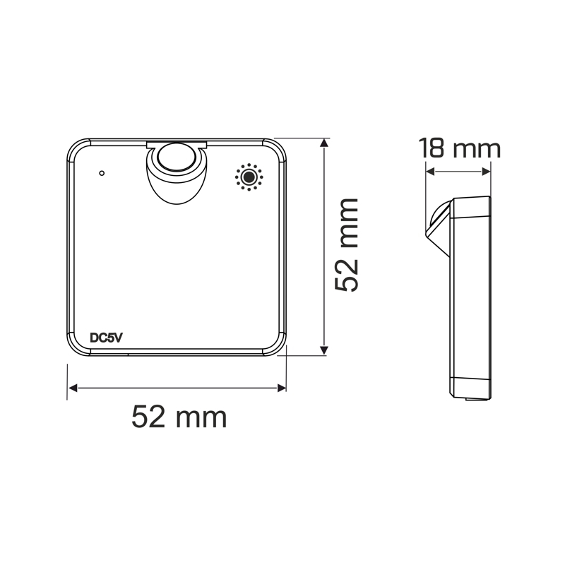 Sensor PIR zasilany jest wbudowanym mini akumulatorem, który ładowany jest przez port USB typu C. Do ładowania wystarczy standardowa ładowarka do telefonu, co eliminuje konieczność stałego zasilania przewodowego i ułatwia montaż w dowolnym miejscu.